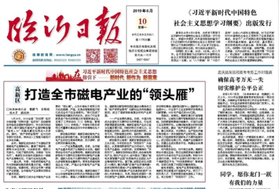 磁电有磁性,磁电产业更有磁性魅力。高新区首位度重点打造磁电产业,吸引了一批优秀人才、优势资源及磁电链条上下游企业,有力助推了“双招双引”工作。(临报融媒记者 曹鹏飞 王海城 通讯员 路兆林) 【《临沂日报》2019年6月10日A1版】