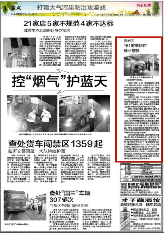 加大餐饮油烟管控,及时更新动态管理台账,强化日常监督检查。截至目前,累计摸排餐饮经营单位385家,停业整顿161家,暂扣烧烤炉具24个,暂扣燃煤炉具5个,清理流动摊点153处。同时,加大对违法建筑工地的处罚力度,对“8个百分百”、《大气强化整治12条》落实不到位的、运输车辆不按照规定上路的,一律顶格处罚。截至目前,已对涉及大气污染扬尘治理案件立案查处34起,现已结案24起,另10起案件正在按照法定程序推进中。(临报融媒记者 董立军 通讯员 王兴刚)