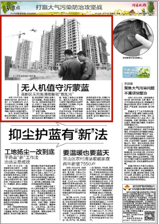 为了全面落实市、区大气污染防治工作部署,打赢蓝天白云保卫战,25日,临沂高新区综合行政执法局兵分两路,利用无人机值守蓝天。