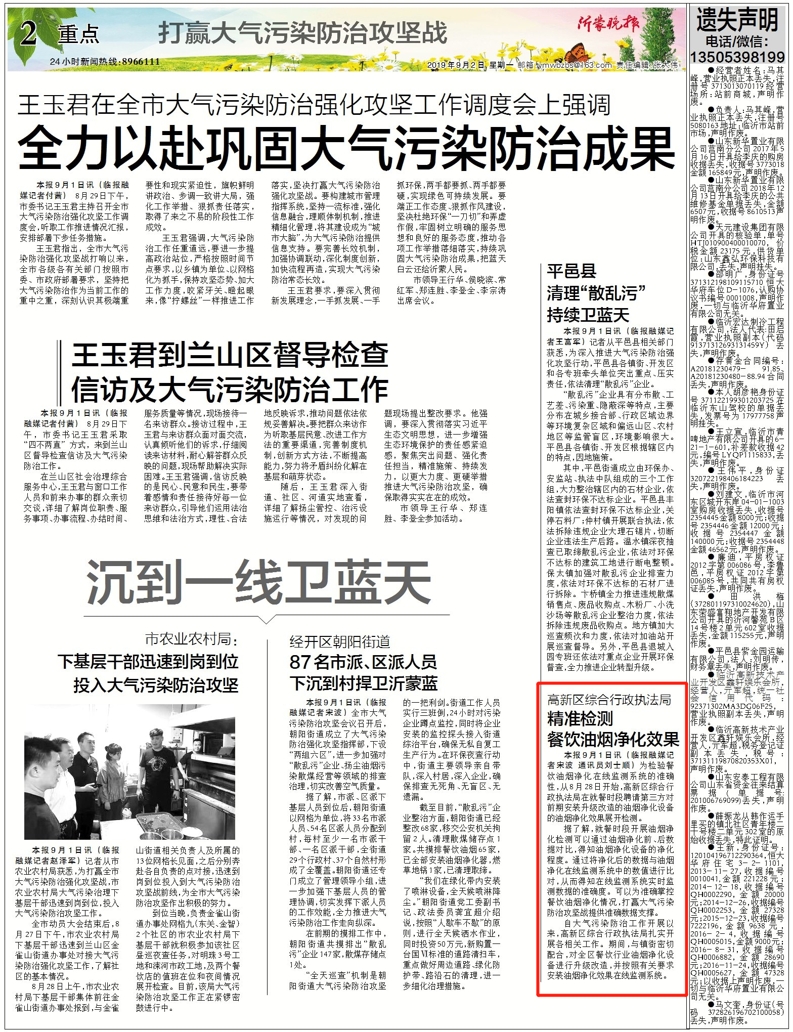自大气污染防治工作开展以来,高新区综合行政执法局扎实开展各相关工作。期间,与镇街密切配合,对全区餐饮行业油烟净化设备进行升级改造,并按照有关要求安装油烟净化效果在线监测系统。(临报融媒记者 宋波 通讯员 刘士顺)