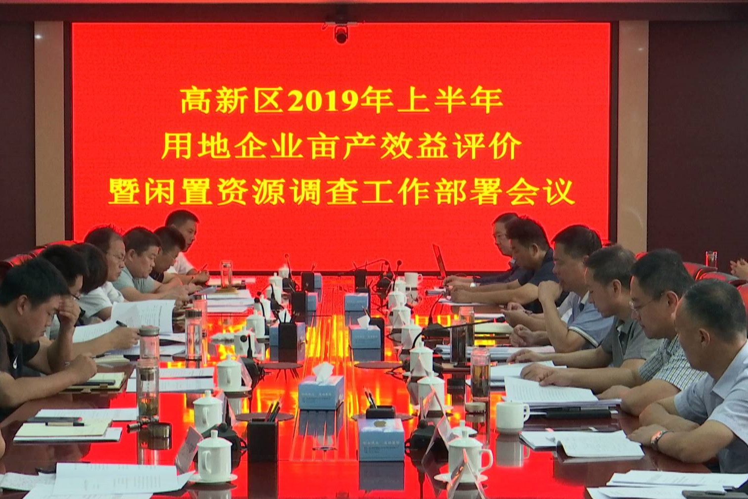 会议传达了市亩产效益办《关于开展2019年上半年全市用地企业亩产效益评价工作的通知》、《临沂高新区2019年闲置资源调查工作方案》。