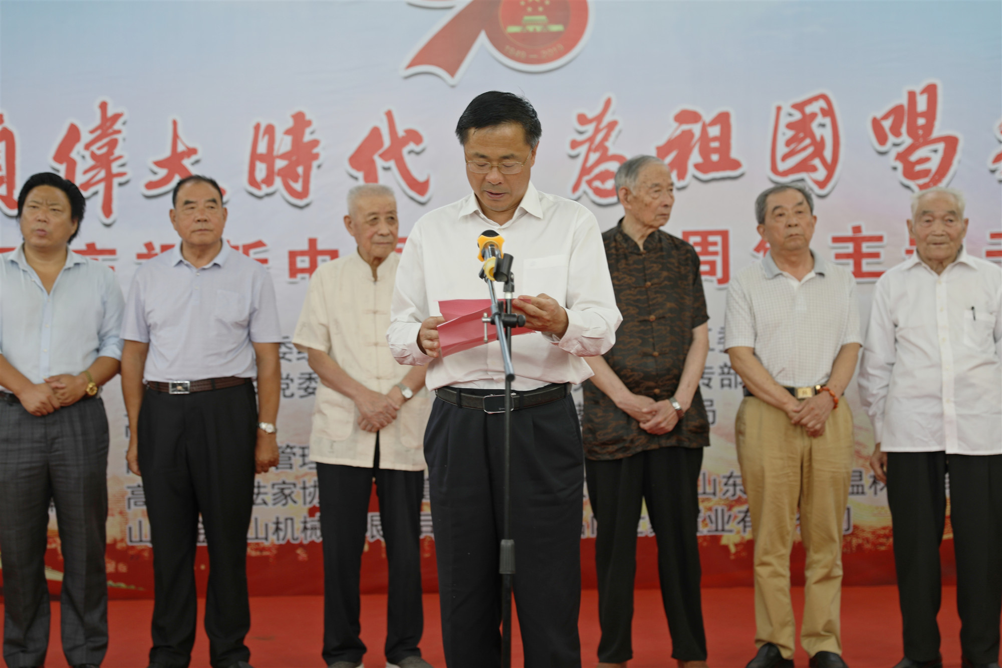 为庆祝中华人民共和国成立70周年,9月25日,高新区在党工委管委会体育馆举办“颂伟大时代·为祖国喝彩”——庆祝新中国成立70周年主题书画展。区党工委副书记王剑峰出席活动并致辞,区相关各部门单位负责人参加。此次活动是由区党工委组织部、纪工委监工委、机关党委、宣传部、总工会、教育体育局、应急管理局联合主办,高新区书法家协会、高新区美术家协会、山东华能保温材料有限公司、山东金宝山机械有限公司、山东名门世家置业有限公司共同承办。本次书画展特邀嘉宾原临沂市政协副主席刘家骥、原临沂市政协常委高庆荣、原临沂市政协文史办主任朱瑞田、临沂市书法家协会办公室主任姜为民、清华大学美术学院书画高研班导师钱守宽共同参加。