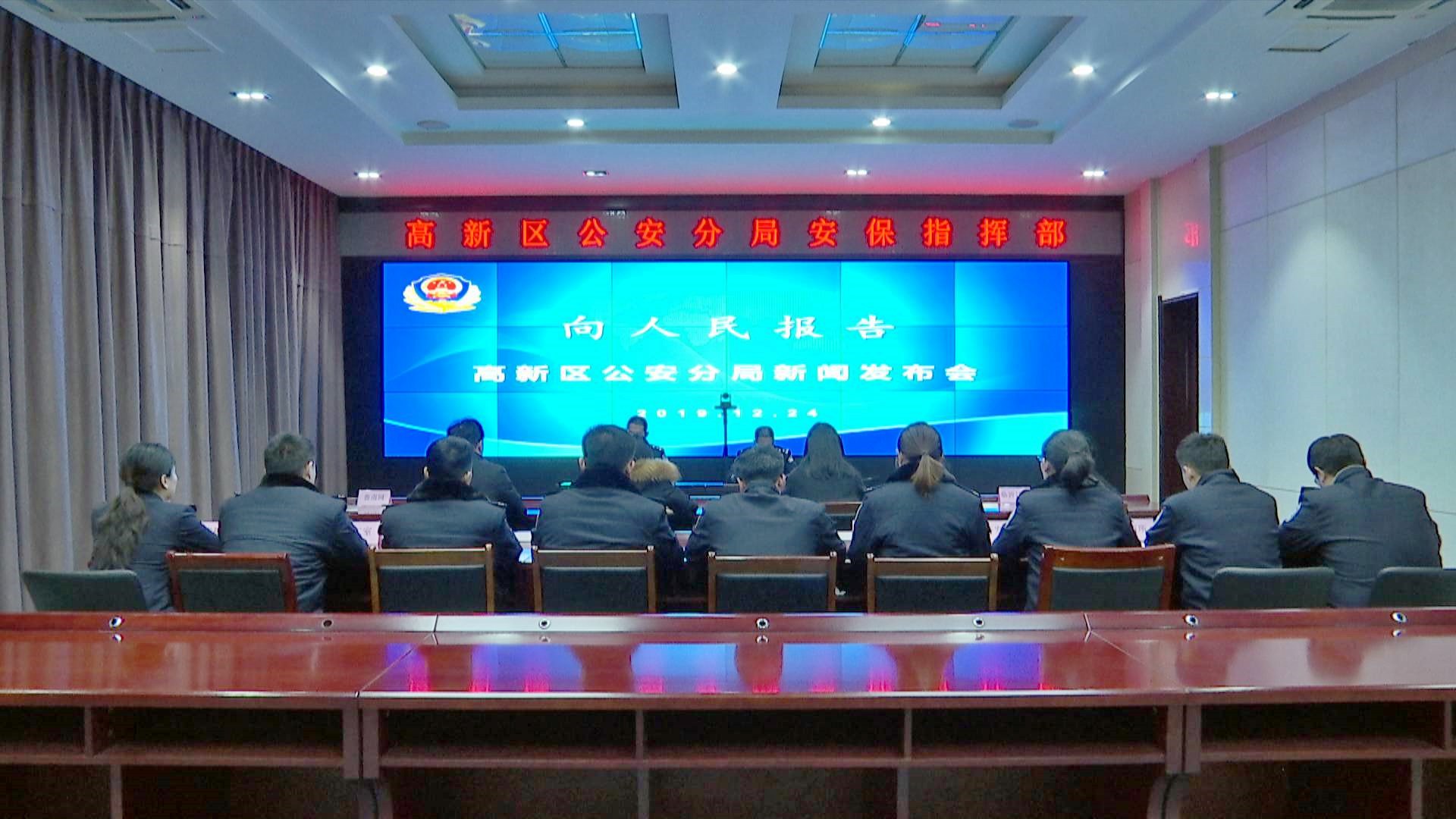 12月24日下午,高新区公安分局召开《向人民报告》新闻发布会。发布会上,区公安分局党委委员、刑侦大队大队长张纪光同志通报了2019年度全区公安工作主要情况。