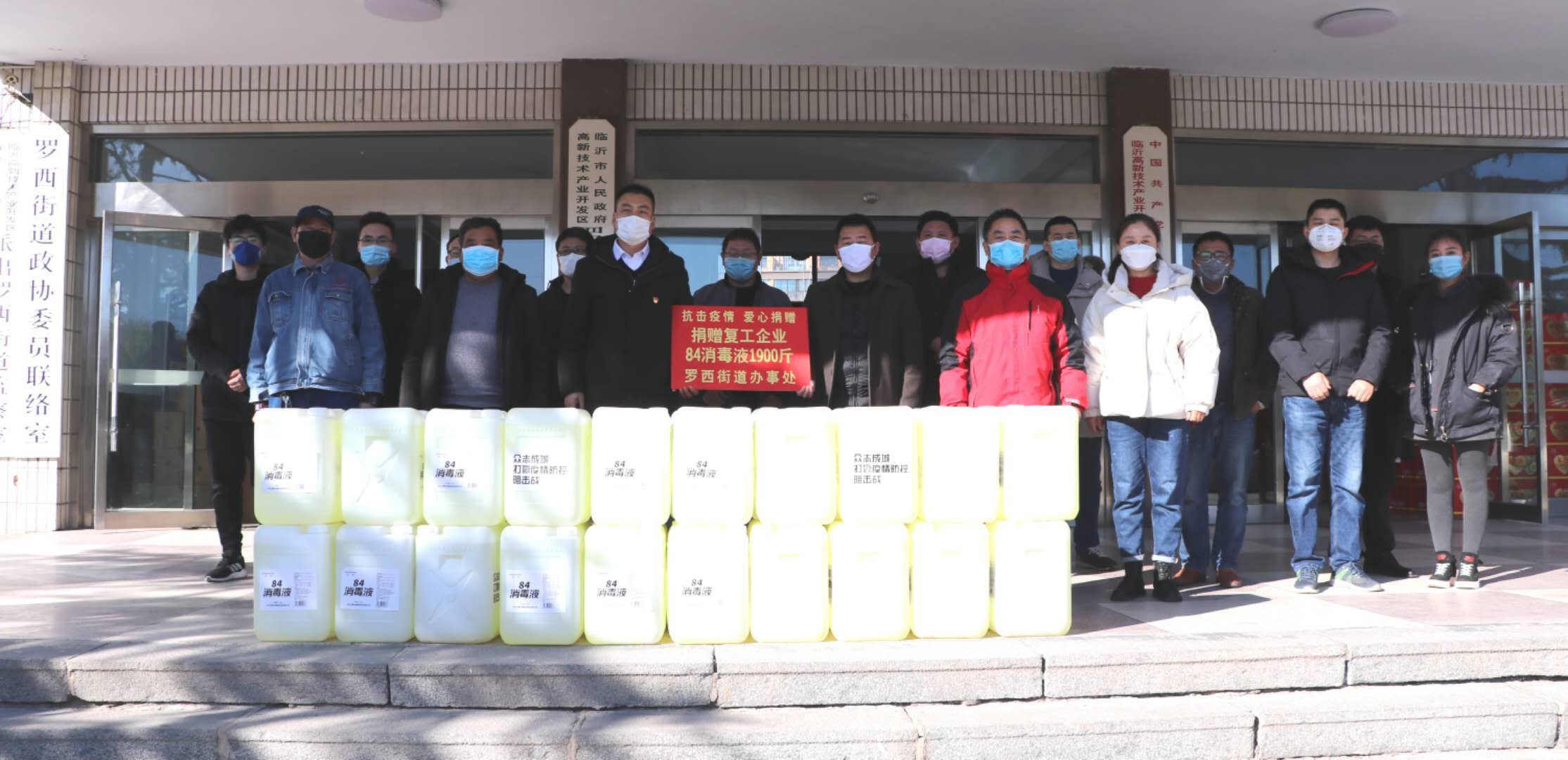 2月17日,罗西街道办事处为临沂天利汽车用品材料有限公司、临沂金昊电池有限公司等19家复工企业分发84消毒液,街道副科级干部任传桥出席。