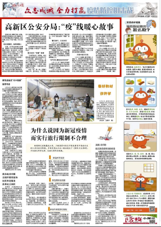 疫情当前,病毒无情人有情。新冠肺炎疫情发生以来,高新区公安分局同辖区群众守望相助,共抗疫情,发生了许多“暖心”的小故事。