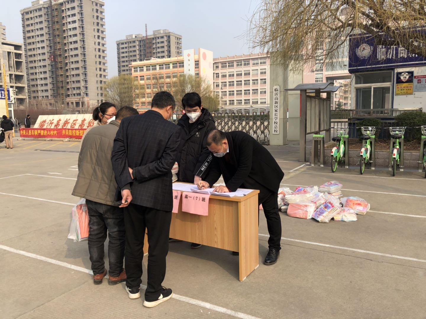 临沂高新区高级中学副校长杜兴华告诉记者:“特殊期间特殊对待,我们统一在家长群发放通知,由家长按照规定的时间到指定地点领取学生的书籍,我们把所有的书籍全部打包,简化程序,简要登记。”