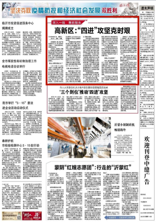 送资金、送政策、听建议、纾难题,临沂高新区深化落实省市委“四进”攻坚及联系帮包镇街工作精神,深入基层一线,帮助解决疫情防控、复工复产、民生保障等困难,促进企业安全生产和社会稳定。