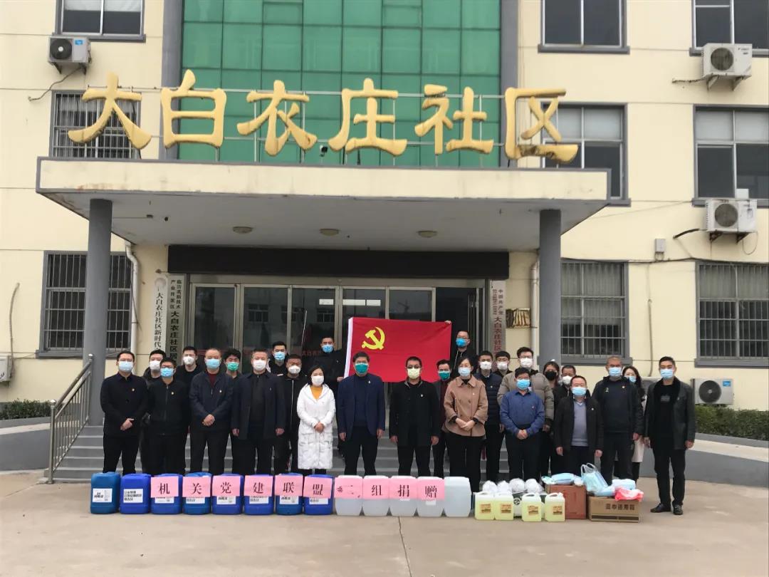 为充分发挥党组织在疫情防控阻击战中的示范引领作用,区机关党建联盟二组主动对接“双报到”社区,全面了解社区疫情防控工作情况。在了解到大白衣庄社区防控物资短缺后,党建联盟二组各党支部积极组织党员集资购买、多方筹措了一批口罩、消毒液、护目镜等物资。