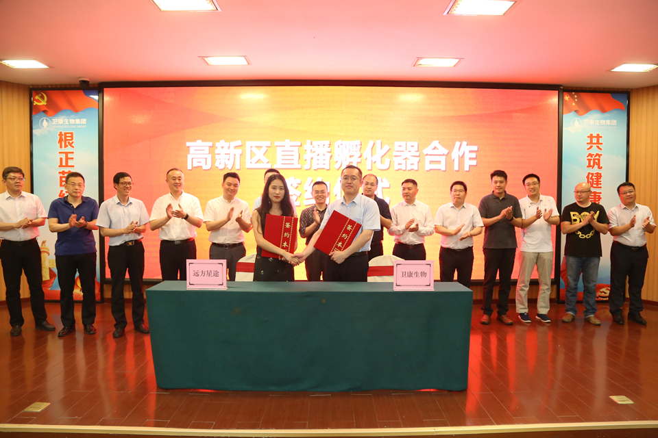 为了更好的拓展企业发展空间,乘势新的直播经济机遇,临沂高新区直播孵化器于6月2日落户卫康。会上,山东卫康生物集团与山东远方星途传媒有限公司成功签约,正式启动高新区直播孵化器,共同发力直播经济领域。临沂市民营企业高质量发展服务队一队队长董瑞东、高新区管委会副主任王永及相关部门负责人参加。