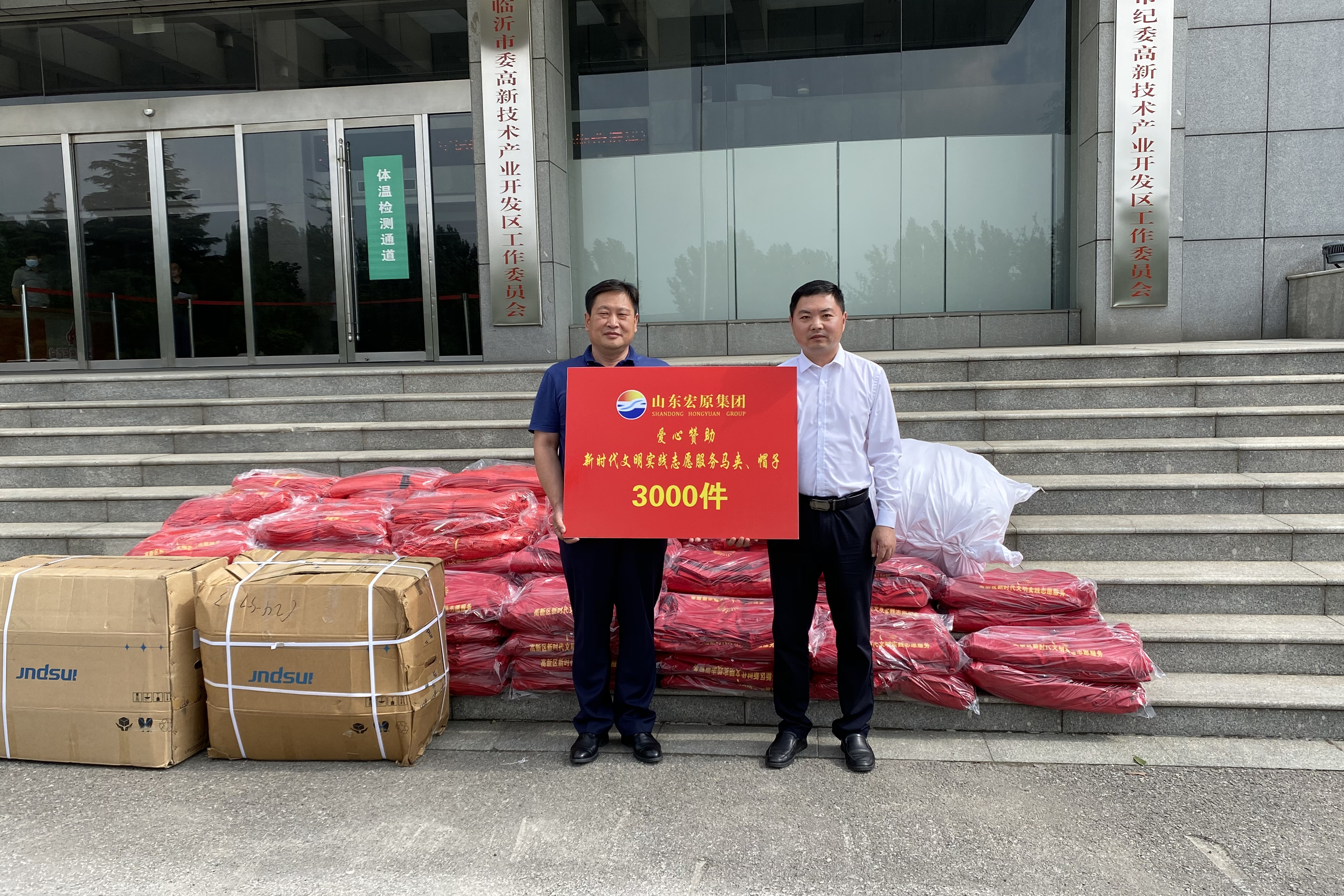 为助力我区文明城市创建工作,6月22日上午,山东宏原集团向我区捐赠新时代文明实践志愿服务红马甲、帽子共计3000件,以实际行动践行社会责任与担当,为全区上下共同创建文明城市奉献爱心与力量。