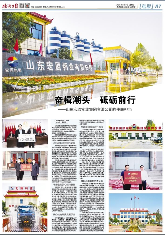 雄关漫道真如铁,而今迈步从头越。站在新时代的起点,面对百年未有之大变局,宏原集团将以绿色、环保、科技为抓手,坚持科学发展,走现代新型脱硫钙制品产业发展之路,不断推进技术革新和产品创新,不断提升产品质量和服务水平,做到生产经营与环境保护相协同、企业发展与科技创新相促进,努力打造成环境友好型、科技示范型的大型集团公司,为带动当地经济发展,为打赢脱贫攻坚战,为全面建成小康社会做出自己应有的贡献。(临报融媒记者 李墨 通讯员 李丽丽)