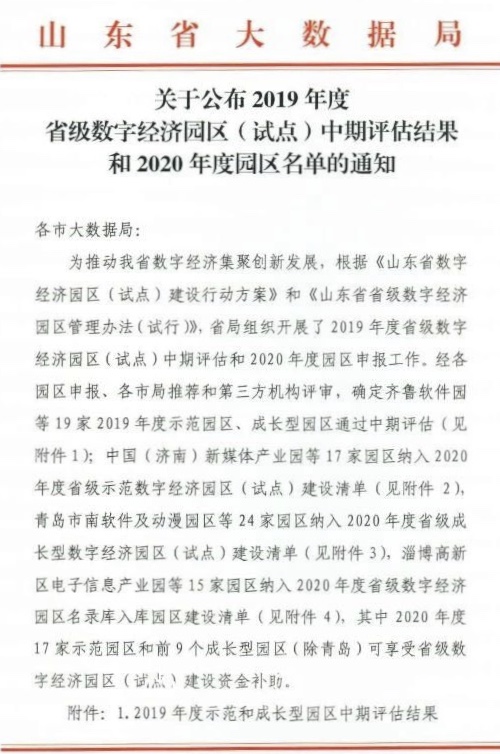 日前,山东省大数据局公布了2019年度省级数字经济园区(试点)中期评估结果和2020年度园区名单,龙湖软件园顺利通过了省级成长型数字经济园区(试点)中期评估,成功入选2020年度省级示范数字经济园区(试点)。从省级成长型数字经济园区到省级示范数字经济园区,龙湖软件园完成了一次华丽升级!