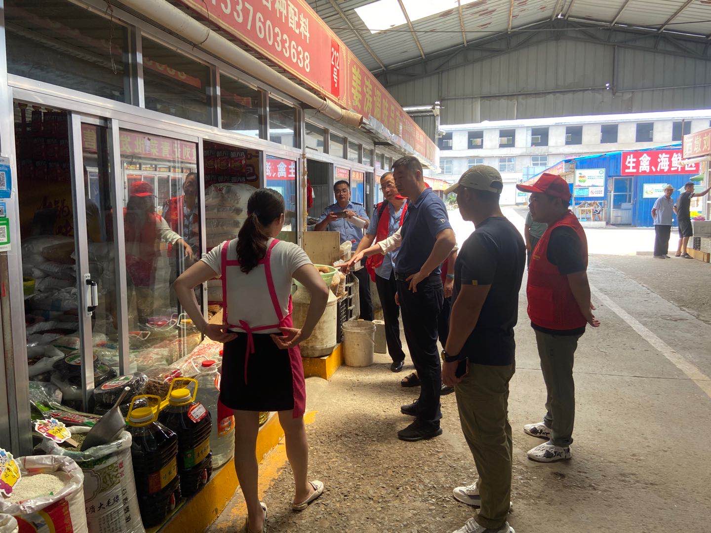 市场监督管理局到农贸市场、饭店开展文明城市创建工作。