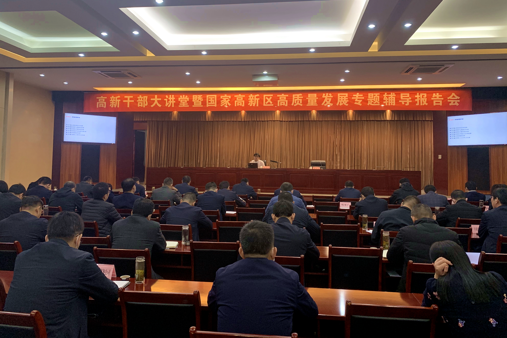 11月23日上午,我区举办“高新干部大讲堂”暨国家高新区高质量发展专题辅导报告会。区党工委副书记王剑峰,区领导朱烨、吴宇、崔荣军、魏建彬、宋奎宇、沈自亮等参加。