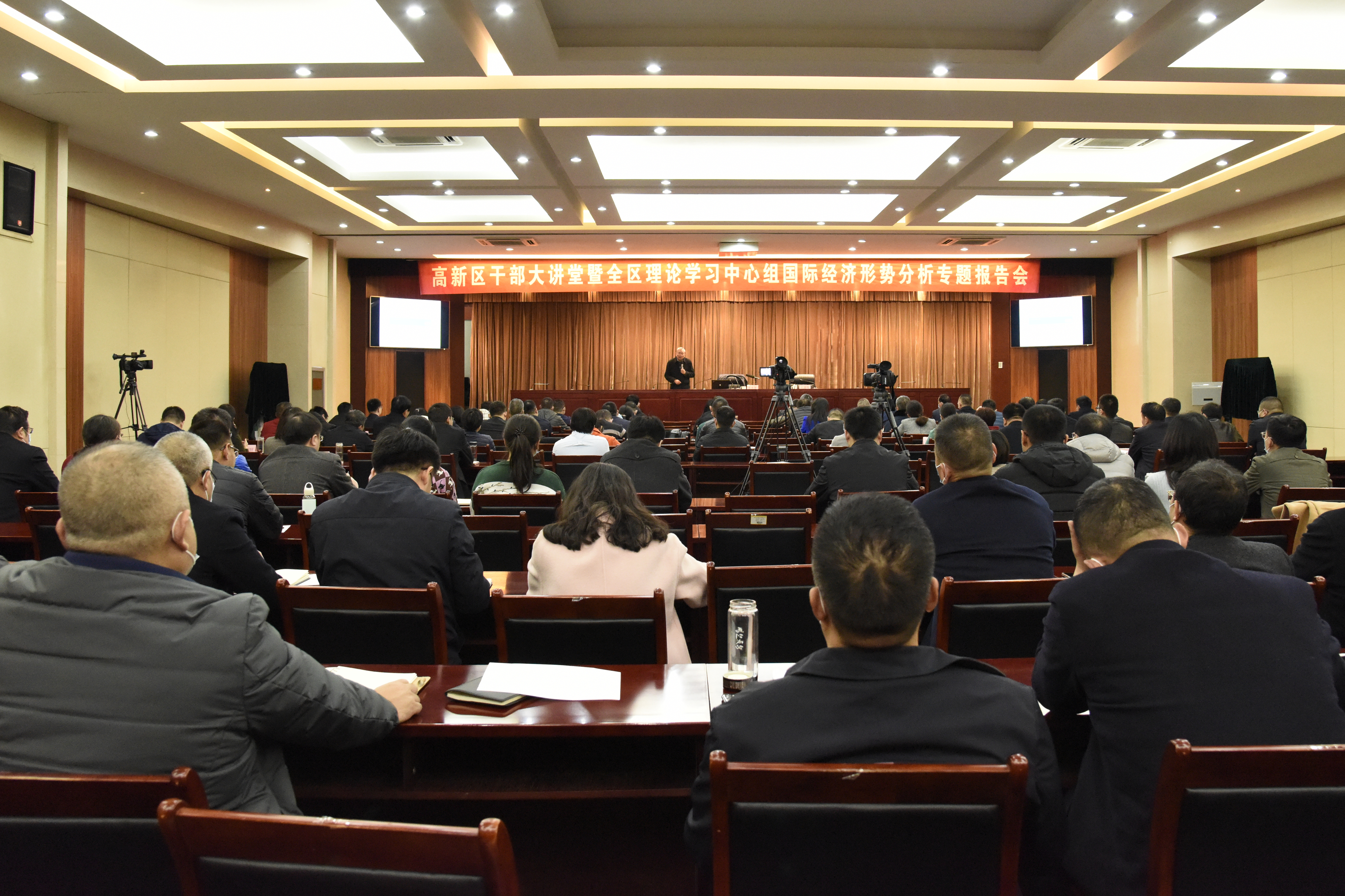 11月30日下午,我区举办“高新干部大讲堂”暨国际经济形势分析专题报告会。国家发改委宏观经济管理编辑部主任宋承敏作《国际经济形势分析》专题报告。区党工委副书记王剑峰主持报告会,区领导宋奎宇、沈自亮参加。