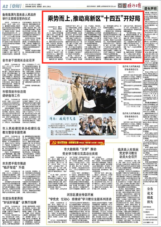 开局关乎全局,起跑决定后程。高新区将在省、市的坚强领导下,头拱地、往前冲,铆足劲、加油干,为临沂实现“由大到强、由美到富、由新到精”战略性转变贡献高新力量。(临报融媒记者 曹鹏飞 党工委宣传统战部 杨琳秋)