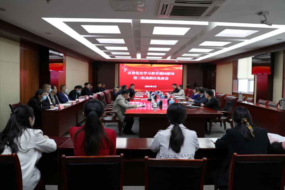 4月20日上午,市委党史学习教育巡回指导三组高新区见面会召开。市委党史学习教育巡回指导第三组组长杜常芹出席会议并讲话。高新区党工委党史学习教育领导小组副组长、党工委副书记、管委会副主任刘佗参加,党工委委员、纪工委书记、监工委主任朱烨主持。