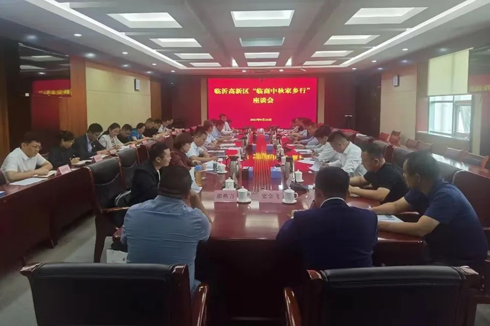 9月26日,借临商大会召开之际,高新区举办“临商中秋家乡行”座谈会。区党工委副书记、管委会副主任王家兴,在高新区的外地商会会长代表、优秀本土企业家代表、高新区籍在外优秀专家学者代表、在高新区投资合作的非临沂籍企业家代表参加,区领导马腾飞主持会议。