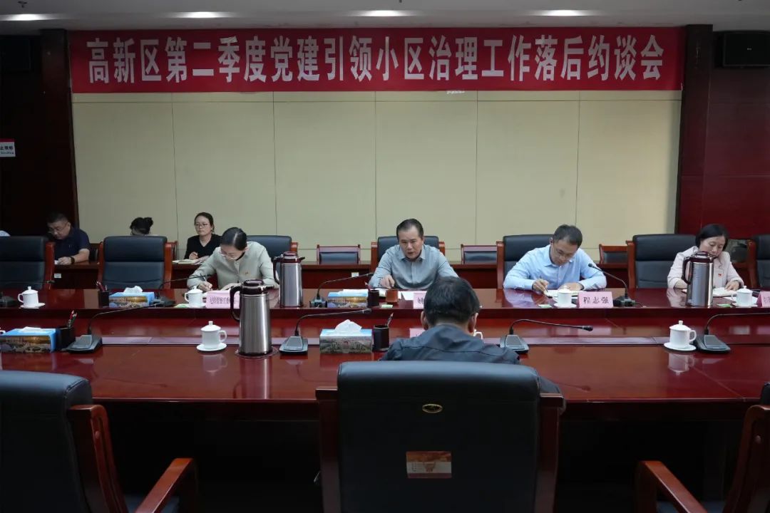 10月8日下午,高新区召开2023年第二季度党建引领小区治理工作落后约谈会,区党工委书记、管委会主任姚书华出席会议并讲话,区党工委委员、组织部部长程志强主持会议。