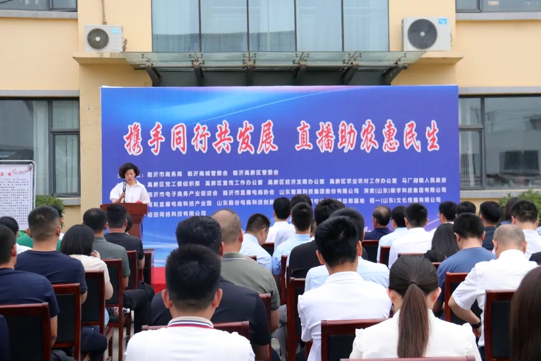5月30日,临沂高新区“携手同行共发展 直播助农惠民生”电商直播助农活动启动仪式在马厂湖镇寿益庄村举行。临沂商城党工委委员赵建华,临沂高新区党工委副书记、马厂湖镇党委书记王建成出席,市派罗庄区、高新区第六批第一书记大组长王秀敏主持开幕仪式。