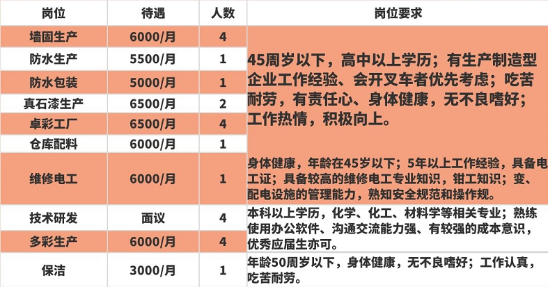 公司践行“尊重员工,唯能是用”的用人理念,重视人才的引进和职业规划培养,常年从北京、上海、广东等地引进各类高级人才。公司现有4个生产厂区,员工200余人,长期聘请行业专家为员工培训,并为员工提供具有挑战性的薪酬及各种福利。现面向社会诚聘精英: