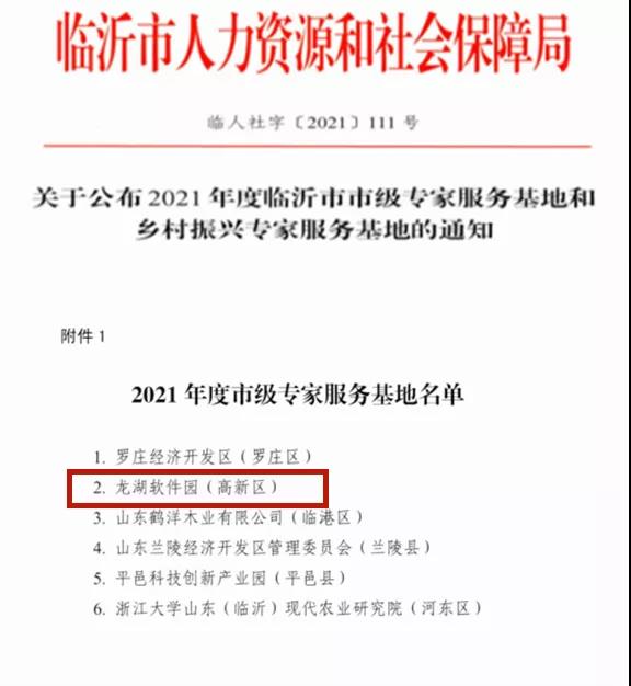近日,市人社局公布了2021年度市级专家服务基地名单,龙湖软件园入选,全市共入选6家。