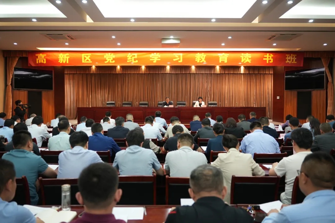 5月10日,高新区举办党纪学习教育读书班,深入学习贯彻习近平总书记关于党纪学习教育的重要讲话和重要指示精神,全面落实党中央决策部署和省委、市委工作要求,认真学习新修订的《中国共产党纪律处分条例》,推动全区党纪学习教育扎实深入开展。区党工委书记、管委会主任姚书华出席开班式并讲话,区党工委副书记、管委会副主任刘春晨主持会议。