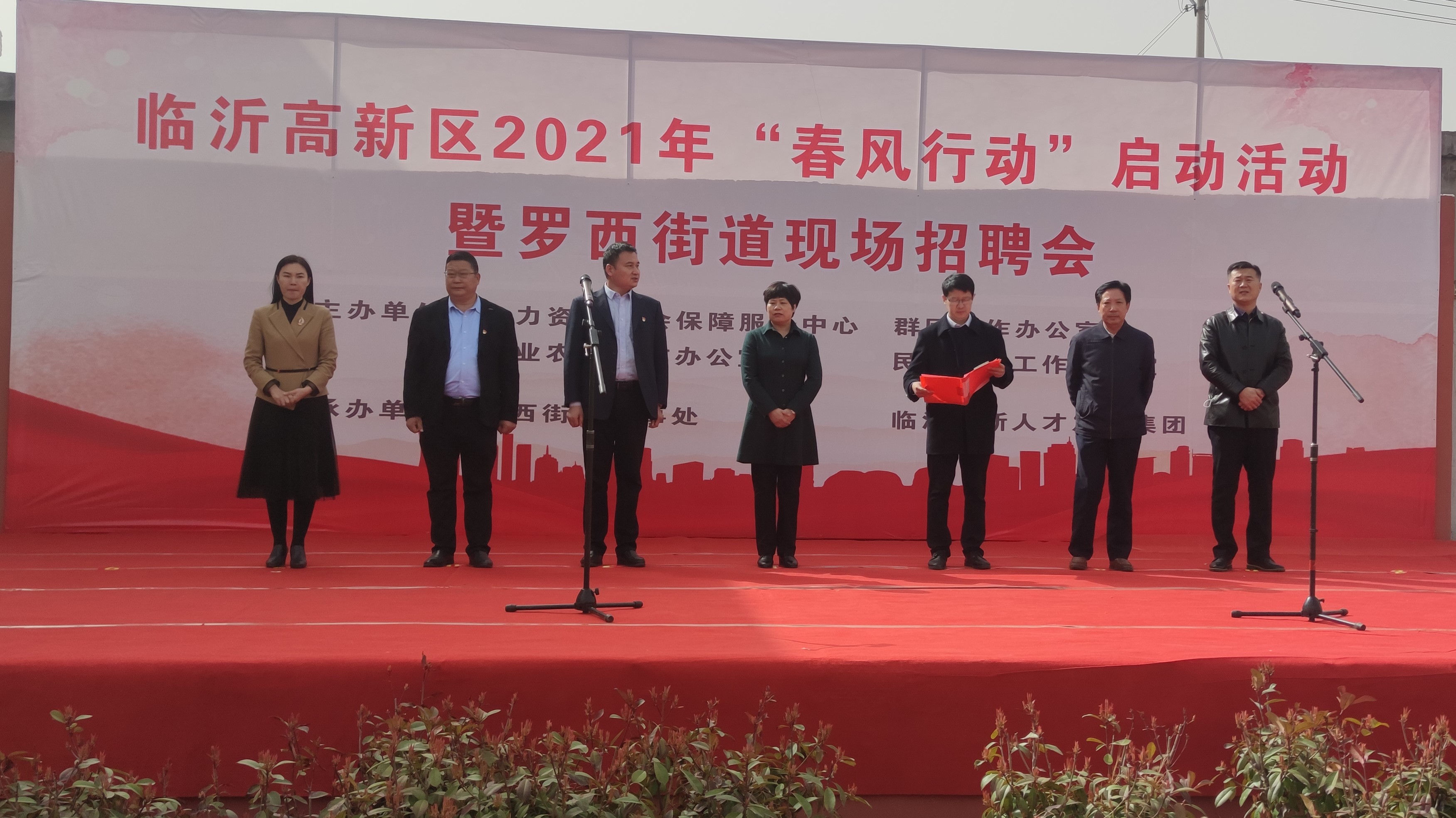 3月16日,临沂高新区2021年“春风行动”招聘会启动仪式暨罗西街道现场招聘会在满沟屯社区举行。活动由高新区人力资源社会保障服务中心、群团工作办公室、农业农村工作办公室、民政卫生工作办公室主办,罗西街道办事处和高新区人才发展集团承办。管委会四级调研员徐景品同志出席活动并讲话。